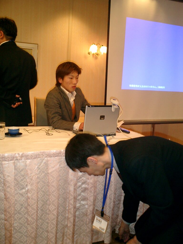 写真5枚目に映るパソコンは私のものだ。インターネット回線(フレッツADSL)のアカウントも私名義。移動用の車を貸し出したのも私。ヤツの晴れ舞台を記録に残してやろうと、撮影にも尽力した。当時の私は、竹山聡に何かあってはならないと、万全のサポート体制を敷いていたのだ。 だが撮影した写真を見返すと、「世界初」を銘打つ製品発表の場にもかかわらず、竹山聡の表情に笑顔も自信も覇気もまるでない。周囲に誰もいなくとも、撮影者である私に一瞥すら寄越さない。 なぜか。後に関係者から聞いた話によれば、このプレスリリースは単なる発表会ではなかった。出資者や代金前払いをした者たちが、竹山の曖昧な事業実体とあやふやな言動に不審を抱き、公共の場に引き出して証拠を保全する目的で強行させたものだという。竹山聡は自身の横領による開発チームの離散により、まともな製品供給体制にない状態であり(回線運用会社イー・ビジョン社の証言あり)、プレスリリースをキャンセルしてそのままバックレるつもりだったというのが実態だ。 この頃の私だけは、ヤツへの不安はあっても不信はなかった。詐欺師のために、親身を尽くしていた。 天地神明にかけて、竹山聡は詐欺師だ。人間の血などこの男の身体には通っていない。 その日の夜、返却された車のガソリンはほぼ空だった。頼まれて貸したものであったのに、だ。1,500万円だけではない。他人の信頼と善意を逆手に取り、有形無形に骨の髄までしゃぶり尽くしながら、自ら使ったガソリン代すら惜しむ。これがヤツの卑小で醜悪な本性だ。 ページ後半に登場する当時の愛人・織田詩絵(弓場詩絵)は、竹山とともに株式会社IMGの資産を食い物にし、愛宕グリーンヒルズ27階の超高級賃貸マンションでルームサービスに舌鼓を打つ日々を過ごしていた。さらには竹山との別れ話のもつれからか、件のポルシェ損壊事件を引き起こし、私は紹介者としての手前、保険会社の聞き取りを受ける羽目になった。 外見に騙されてはいけない。竹山聡から被った有形無形の被害と迷惑は、数え切れない。金銭、時間、労力、信用、名誉、人脈、知人、友人...